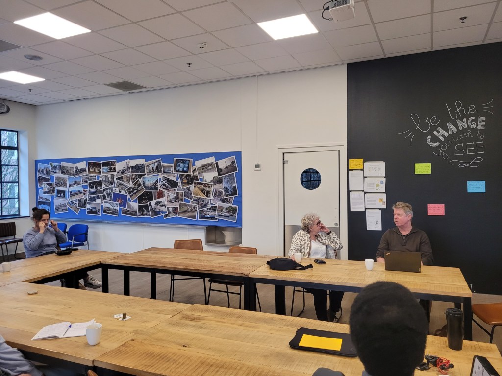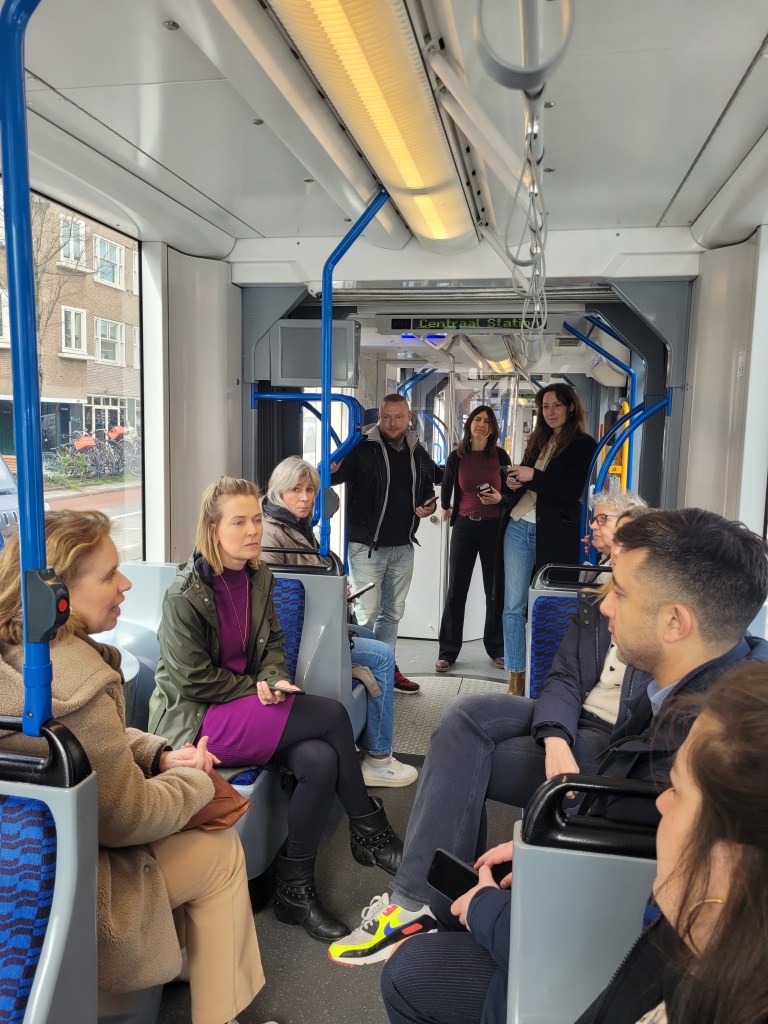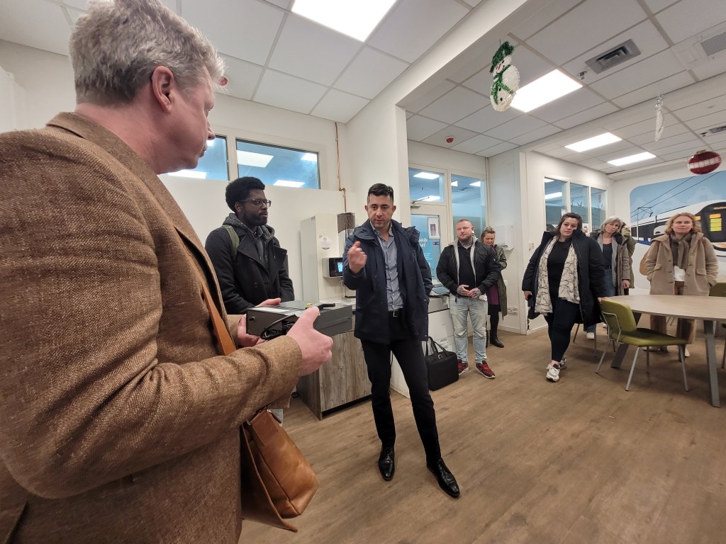 De vierde dag was aanzienlijk drukker dan de dagen hiervoor. Waar we tot nu toe relatief weinig aandacht hadden van mensen om ons heen, stond vandaag in het teken van heel veel geïnteresseerden. Alexander Scholtes, wethouder o.a. maatschappelijke ontwikkeling en digitale stad en Ellen Swinkels, directeur commercie van de GVB waren er samen met minder bekende maar voor deze pilot zeer belangrijke stakeholders.